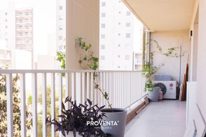Living comedor amplio y muy iluminado. Balcón a lo largo del living y de las dos habitaciones que no solo brinda luminosidad a los espacios sino también vistas.