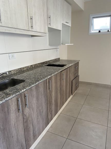 • Amoblamiento de cocina completo con alacenas y bajo mesada en melamina, y mesada de granito natural.