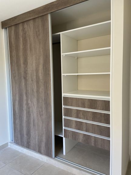 • Dormitorio orientado al este, super luminoso, con placares amplios y prácticos de puertas corredizas.