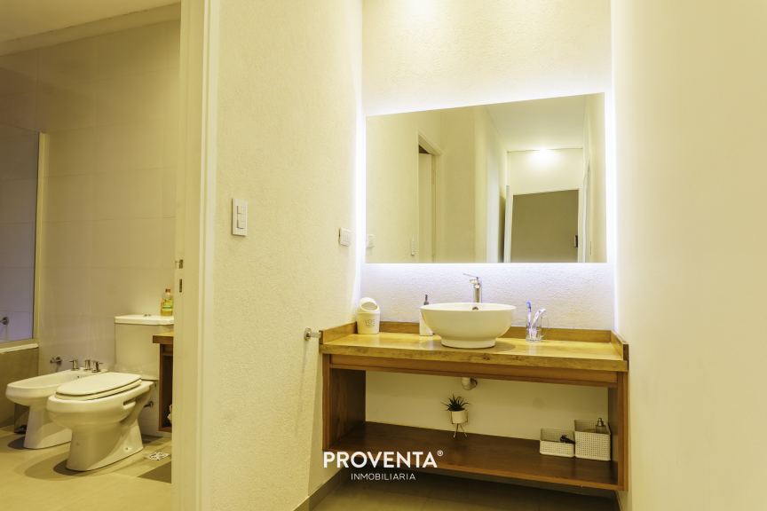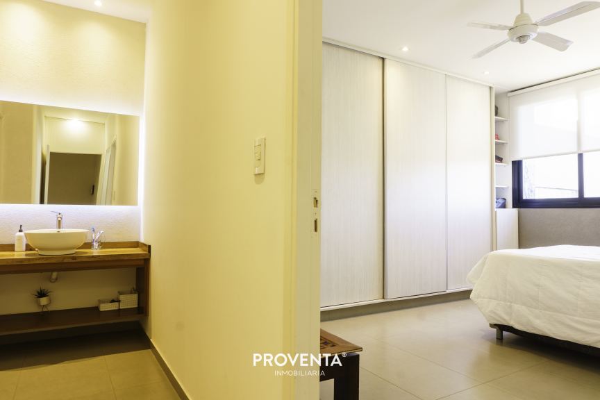 En planta alta encontramos una suite principal muy amplia con antebaño y vestidor, dos dormitorios también generosos con grandes placares, antebaño y un baño completo. Todos los baños son de cómodas dimensiones y muy funcionales. Además, cuenta con lavadero y un patio tender con reja superior, pensado para mayor seguridad.