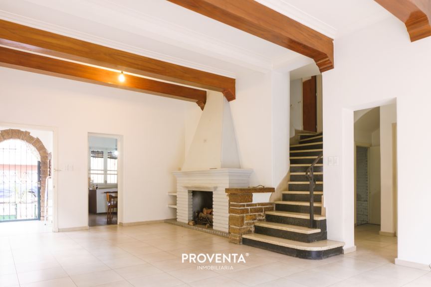 * Gran living-comedor con techos altos y solidas vigas de madera lustrada, lleno de luz natural y con salida a un patio íntimo ..