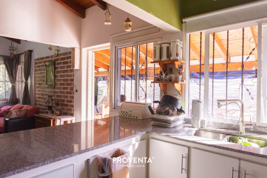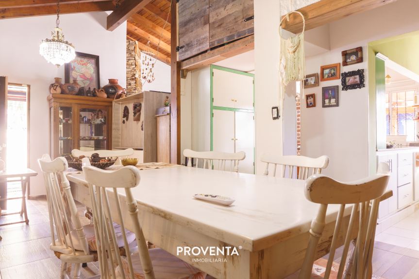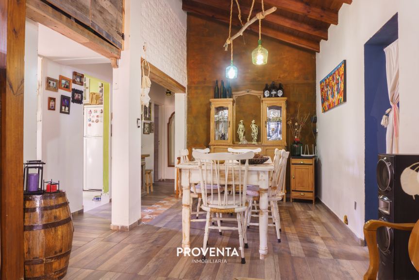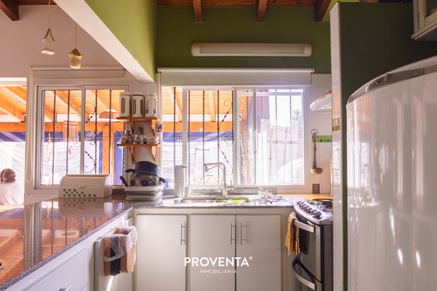 La casa principal ofrece 3 dormitorios (2 en planta baja y 1 en planta alta), 2 baños completos, una cocina luminosa y funcional, y espacios integrados de living y comedor que invitan a compartir charlas, risas y momentos inolvidables.