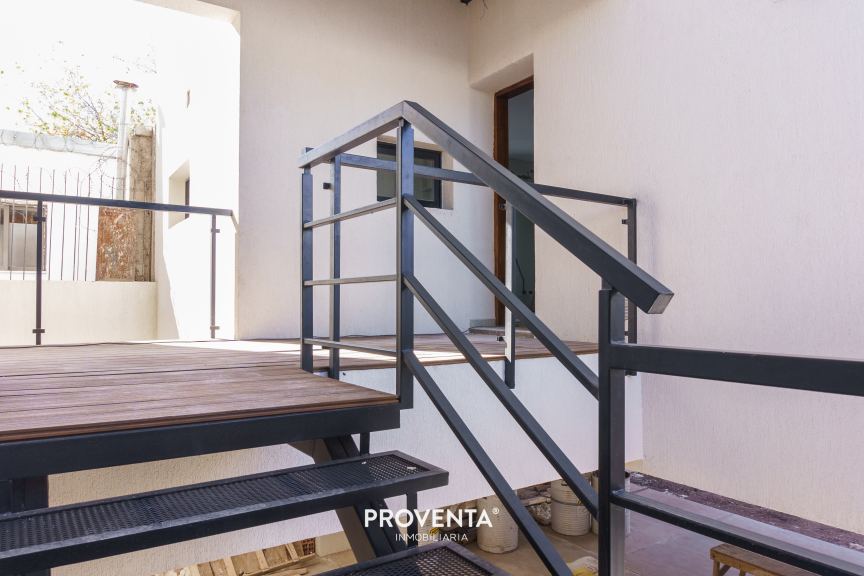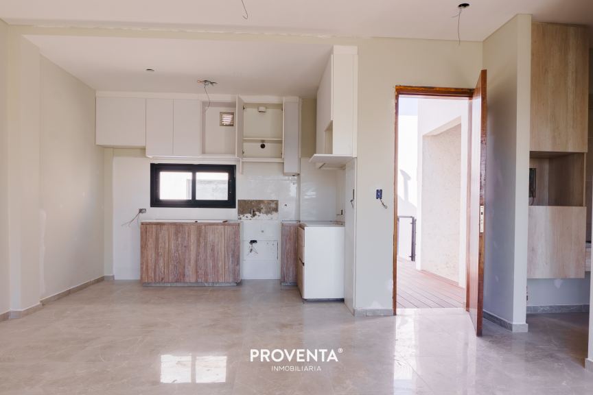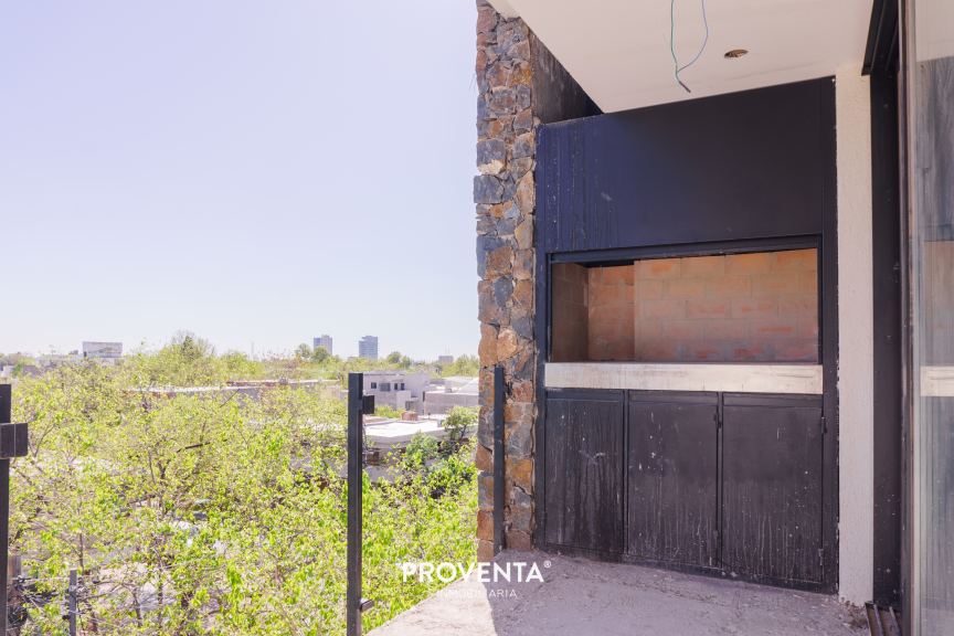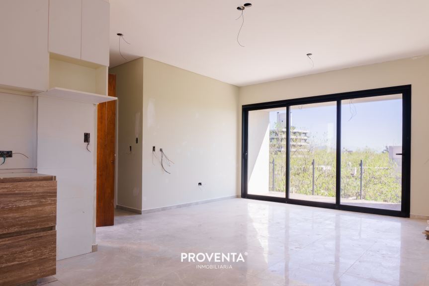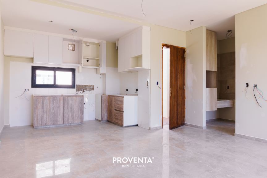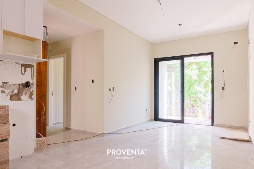 Amplio living-comedor con cocina integrada, baño con antebaño y balcón con parrilla propia.